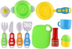 Ta barvit komplet otroškega posodja prinaša otrokom vse potrebno za zabavno kuhanje in serviranje. Zahvaljujoč realističnim dodatkom se mali kuharji naučijo osnov pogrinjanja in kuhinjskih opravil, ob tem pa razvijajo fino motoriko, komunikacijo in predstavljivost.