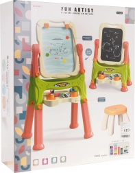 Otroška tabla 2v1 magnetna in kredna z nastavljivo višino in taburejem