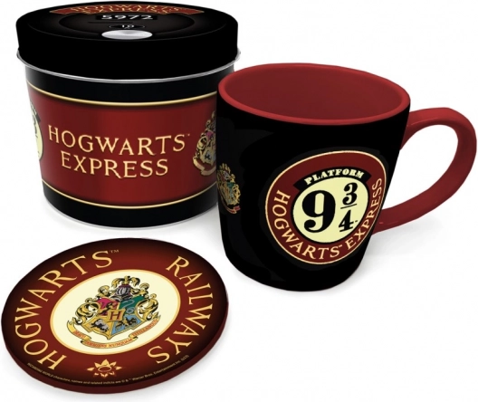Odkrijte čarovnijo z omejenim darilnim setom Harry Potter, ki vsebuje skodelico in podstavek, vse zapakirano v elegantni kovinski škatli.