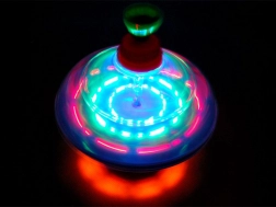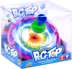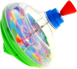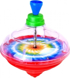 Tradicionalna igrača v moderni izvedbi: barvita vrtavka, ki se ob vrtenju sveti in predvaja veselo glasbo. Enostavno upravljanje s pritiskom na bat zavrti vrtavko okoli lastne osi in pod prozornim pokrovom ustvari očarljiv mavrični učinek. Odporna plastična izvedba, idealna za razvoj fine motorike in koordinacije.