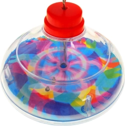 Prosojna kupola omogoča opazovanje barvitega vrtinca v notranjosti, medtem ko trpežna plastika zagotavlja vzdržljivost igrače.