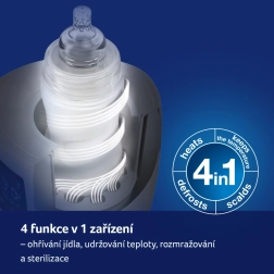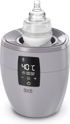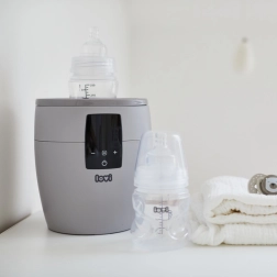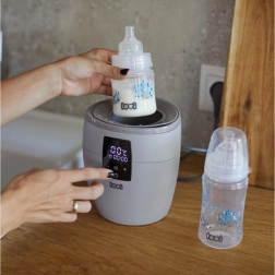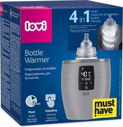Grelnik stekleničk LOVI 4 v 1. Hitro in enakomerno segrevanje. Intuitivno upravljanje na preglednem zaslonu. 4 funkcije v treh načinih: način BOTTLE – segrevanje tekočin v steklenički, odtajevanje obrokov, shranjenih v vrečki. Ohranitev želene temperature do 10 ur. način HOT – hitro segrevanje obroka + funkcija sterilizacije stekleničk in dodatkov. način DINNER – ohranjanje želene temperature do 3 ure. Varen – samodejni izklop ob odsotnosti vode v načinu HOT. V kompletu je merilni lonček za vodo. Grelnik Lovi predstavlja idealen in varen način segrevanja obrokov. Vsebuje termostat, ki zelo dolgo ohranja nastavljeno temperaturo. Ščiti obrok pred pregrevanjem in izgubo dragocenih vitaminov in mineralov. Super hitri grelnik LOVI samodejno nastavi čas segrevanja obroka ne glede na to, ali je obrok hladen, zamrznjen ali sobne temperature. Grelnik Lovi je namenjen segrevanju obrokov v naslednjih vrstah stekleničk ali kozarcev: • v stekleničkah Lovi in večini drugih stekleničk s širokim vratom • v klasičnih stekleničkah • v kozarčkih s pripravljenim otroškim obrokom. Največja širina stekleničke, primerne za ta grelnik, je 6,5 cm. 4 funkcije v 1 – segreva, ohranja temperaturo, odtaja in sterilizira s paro. Hiter – obrok segreje že v 2 minutah, kar ga uvršča pred večino grelnikov na trgu. *80 ml mleka/vode s začetno temperaturo 21 °C. Univerzalen – združljiv z večino otroških stekleničk, ki so na voljo na trgu. Varen – samodejni izklop ob odsotnosti vode v načinu HOT. Grelnik ustreza zahtevam: Direktiva Evropskega parlamenta in Sveta 2006/95/ES o usklajevanju zakonodaje držav članic v zvezi z električno opremo, namenjeno za uporabo v določenih mejah napetosti. Direktiva Evropskega parlamenta in Sveta 2011/65/EU o omejevanju uporabe nekaterih nevarnih snovi v električni in elektronski opremi. Direktiva Evropskega parlamenta in Sveta 2004/108/ES o približevanju zakonodaje držav članic v zvezi z elektromagnetno združljivostjo. Opozorilo: Natančna navodila za ustrezno in pravilno vzdrževanje izdelka najdete v uporabniškem priročniku.