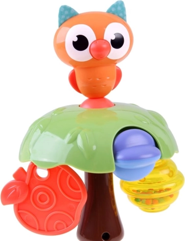 Čarobna ropotuljica s sovinim motivom je izdelana iz kakovostne plastike in ima prisesek, ki omogoča enostavno pritrditev na gladko površino, kot je miza ali stol. Ta barvita igrača je idealni spremljevalec med hranjenjem ali pri vsakodnevni igri. Ropotuljica omogoča otroku opazovanje, vrtenje in premikanje igrače, kar spodbuja njegov senzorični in motorični razvoj.
