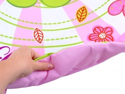 Otroška igralna podloga je zasnovana tako, da ustvarja varno in udobno mesto za vašega otroka. Njene žive barve in mehak material so idealni za vsakodnevno igranje ali sprostitev. Podloga je opremljena z obroči s cvetovi in mrežo proti komarjem, ki varuje pred insekti ter povečuje privlačnost za otroke.