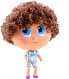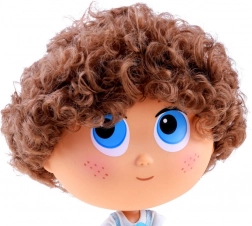 Velike modre oči, nežne pegice in kodrasti rjavi lasje dajejo punčki poseben značaj in prijazen nasmeh.