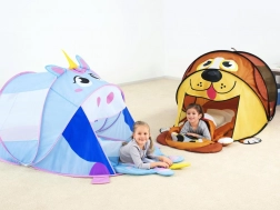 Prisrčen otroški pop-up šotor v obliki samoroga znamke BESTWAY spremeni vsako sobo, vrt ali plažo v pravljično kraljestvo. Zahvaljujoč hitremu samodejnemu postavljanju, lahkemu materialu in mrežastim okencem za zračenje je idealen za kreativno igro in počitek. Vložek na tleh zagotavlja čisto in udobno okolje, mere 182 × 96 × 81 cm pa nudijo dovolj prostora za igro in kratek počitek.