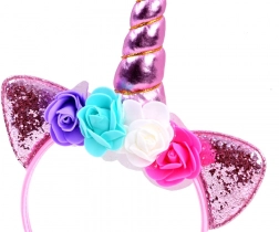 Mehak penasti rog, bleščeča ušeska in pisani cvetovi pričarajo edinstven samorogov videz za vsako zabavo.