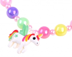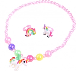 Barvna ogrlica iz kroglic s prikupnim obeskom samoroga in dva prstana dovršita kostum ter spodbudita čarobno igro.