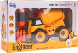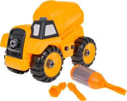 Zabaven sestavljiv gradbeni mešalnik za male graditelje od 3 let razvija fino motoriko, logično razmišljanje in kreativnost. Zahvaljujoč čvrsti plastiki je vozilo mogoče večkrat razstaviti in sestaviti, boben je dvižen, nagiben in vrtljiv. Priložen je izvijač s 3 zamenljivimi nastavki.