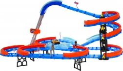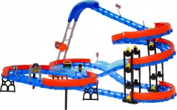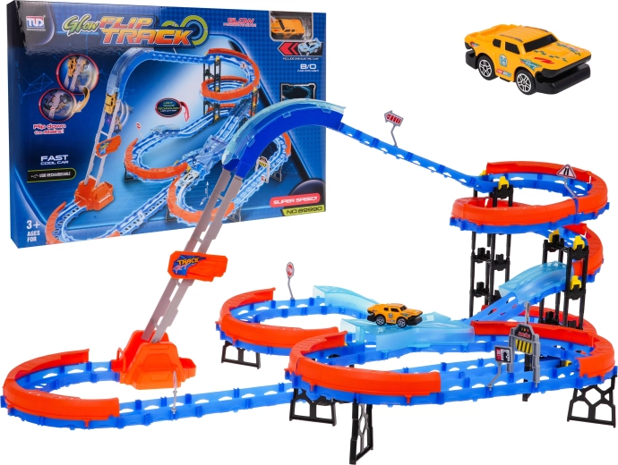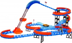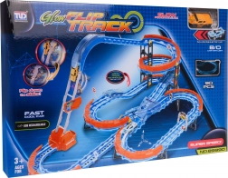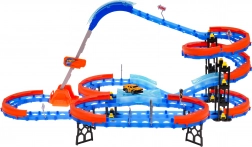 Ustvarite svoj lastni ekstremni dirkalni krog. Modularni deli omogočajo postavitev večnivojske proge z zankami, lestvijo in dinamičnimi spusti. Avtomobilček z LED osvetlitvijo napaja vgrajeni akumulator 3,7 V, preprosto se polni z USB kablom (priložen).