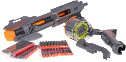 Predstavljamo Mega Blaze Storm sivo puško, idealno izbiro za otroke in mlade, ki iščejo zabavo v znanstvenofantastičnem slogu. Ta igrača je opremljena s 40 izstrelki, ki jih je mogoče enostavno vstaviti v stranski nabojnik. Puška ponuja: