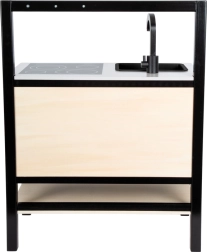 Ta vizualno privlačna otroška kuhinjica prinaša sodoben industrijski videz, ki izstopa v vsaki otroški sobi. Lahka, a stabilna konstrukcija s črnim okvirjem omogoča preprosto prestavljanje, zato lahko hitro menjate prostor igre. Realistični upravljalniki, ilustrirane naprave in funkcionalni elementi spodbujajo domišljijo in podpirajo samostojno igro.