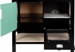 Omara pod delovno površino, kljukice za obešanje pripomočkov in polica z dnom, uporabnim kot rešetka za žar, poskrbijo za red. Levi del omarice je mogoče uporabiti kot “hladilnik” ali “pomivalni stroj”.
