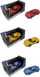 Zabaven avto na vztrajnik dolžine 16,5 cm bo razveselil male in velike dirkače. Ponuja preprosto upravljanje, gladko vožnjo in tri privlačne barve – rdečo, rumeno in modro.
