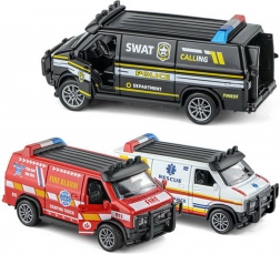 Izberite med tremi izvirnimi različicami tega kovinskega avtomobilčka: policija, reševalci ali gasilci. Vsako vozilo se ponaša s podrobnim videzom in kakovostno kovinsko konstrukcijo. Avtomobilček se zahvaljujoč sistemu potega nazaj po vsakem spustu hitro vrne na štartno črto!