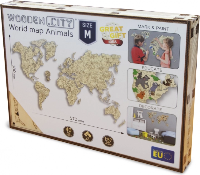 - Leseni stenski zemljevid z živalmi