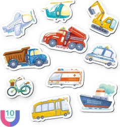 Magnetna igra Prevoz je idealen izobraževalni pripomoček za učenje angleščine, ki združuje zabavo in izobraževanje. Zaradi svoje oblike pomaga otrokom na privlačen način naučiti angleške imena vozil.
