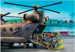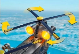 S helikopterjem Playmobil in njegovim vitlom so tudi zračne reševalne misije mala malica za specialno enoto. Kokpit sprejme dve figurici, tovorni prostor pa ima še dva dodatna sedeža za druge figurice. Vgrajeni svetlobni in zvočni modul se aktivira z gibanjem rotorja. Občutljiv tovor je mogoče zavarovati s trakom, dodatni tovor pa pritrditi z uporabo transportnih verig. Reševalni helikopter je mogoče odpreti s štirih strani za enostavno igranje.