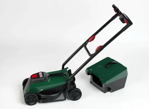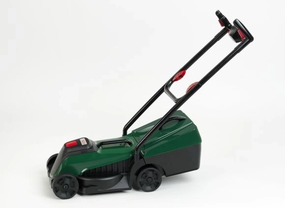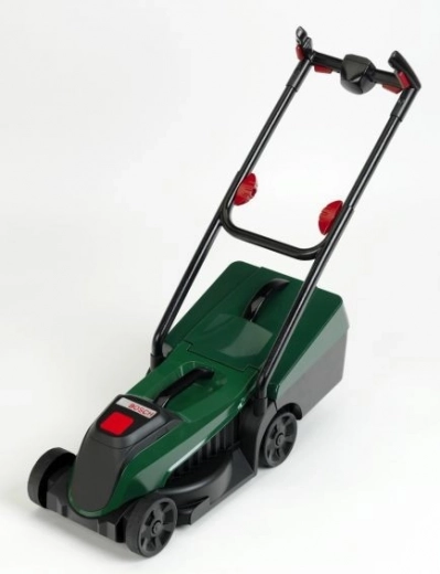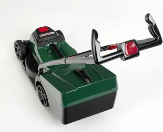 Ta otroška kosilnica zvesto posnema pravi stroj: ima temno zeleno ohišje, črn ročaj in premična kolesa, ki se gladko kotálijo po različnih površinah. Vgrajen, odstranljiv svetlobni in zvočni modul ob pritisku na gumb osvetli logotip BOSCH in predvaja realistične zvoke motorja. Tudi brez modula se pri potiskanju oglašajo prijetno mehansko »klikanje« in ritmično bobnenje koles.