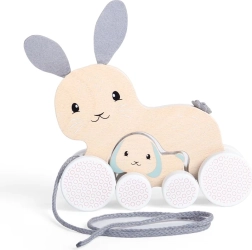 Ta očarljivi vlečni zajček s skritim mladičkom je idealen spremljevalec za prve raziskovalne poti po stanovanju. Zaradi kakovostne izdelave iz trajnostno pridobljenega FSC® lesa in za otroke varnih barv je igra ne le zabavna, temveč tudi varna. Mehka filcana ušesa in repek dajejo igrački prisrčen videz in prijetno tipno stimulacijo.