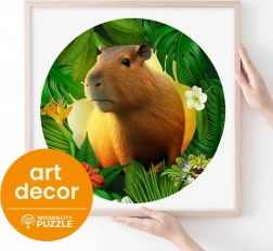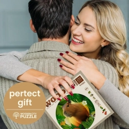 Lesene puzzle WOODEN CITY z motivom kapibare prinašajo edinstveno izkušnjo sestavljanja. Posebno oblikovani koščki, od katerih je del v obliki živali, bodo razveselili vsakega ljubitelja izvirnih puzzlov. Z laserjem poudarjeni detajli dodajo sliki globino, posamezni oblikovani koščki pa lahko samostojno stojijo kot majhne figurice.