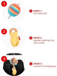 Igrača DISCOVEROSITY 3 v 1 za voziček je zasnovana v sodelovanju s strokovnjaki za montessori izobraževanje. Podpira vizualno stimulacijo, razvija motorične spretnosti in je idealna za uporabo doma in na poti.