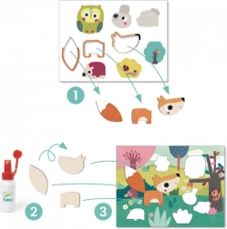 Ta začetni kolažni komplet DJECO je idealna izbira za prve ustvarjalne korake. Veliki in čvrsti deli iz debelega kartona se zlahka ločijo tudi v malih ročicah, varno lepilo pa je prilagojeno otrokom od 18 mesecev. Zahvaljujoč pregledni slikovni knjižici lahko otroci ustvarjajo samostojno in z veseljem.