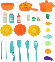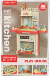 Vključuje 44 elementov vključno s posodo in živili za avtentično igro.