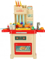 Kuhinja je narejena iz kakovostne plastike, kar zagotavlja dolgo življenjsko dobo in varnost pri igri. Zahvaljujoč 44 priloženim elementom, vključno s posodo in živili, si otroci lahko ustvarijo avtentične kulinarične izkušnje. Kuhinja se napaja z 3 AA baterijami (niso priložene).