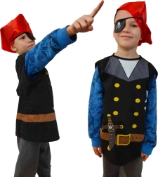 Ostane le še skok na krov in uživanje v nepozabni piratski odpravi! S tem kostumom se vaš otrok hitro spremeni v pravega pirata. Kostum vsebuje vse potrebne dodatke: kamizolo, ruto in prevezo čez oko. Grotesken in avtentičen videz je zagotovljen.