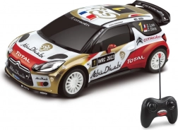RC avto Citroen DS 3 WRC je odlična izbira za male in velike navdušence nad avtomobili na daljinsko upravljanje. Ponuja popolnoma funkcionalno gibanje v vse smeri in stilno oblikovanje z gumijastimi kolesi in delujočimi lučmi.