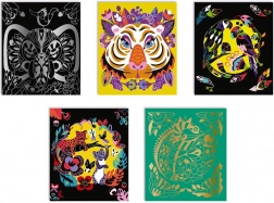 5 praskalnih kartic z različnimi živalmi, lesena paličica za praskanje