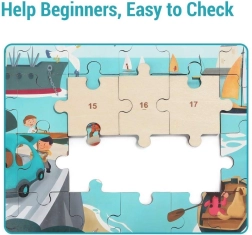Vsak košček ima na zadnji strani številko za lažjo orientacijo. Otroci tako hitreje razumejo logiko sestavljanja ter krepijo fino motoriko in zbranost.