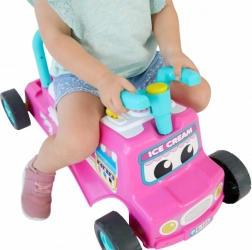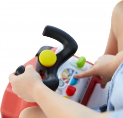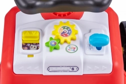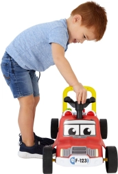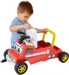 Praktičen shranjevalni prostor pod sedežem sprejme drobne igrače ali zaklade s sprehoda. Hupa na volanu dodaja zabavne učinke, zadnji ročaj pa služi kot opora pri učenju hoje. Poganjalec je na voljo v 2 izvedbah (gasilci / sladoledar), motiv je poslan naključno.
