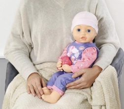 Punčka je oblečena v ljubek pajac z ovčko in rožnato kapico. Del opreme je tudi steklenička za igro hranjenja. Zaradi standardne velikosti lahko uporabljate tudi prava otroška oblačila, zato je preoblačenje in kombiniranje oprav tako preprosto.