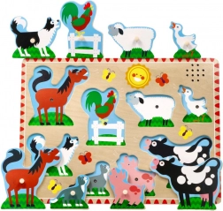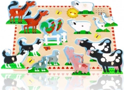 Zabavne in poučne lesene sestavljanke za otroke z motivom kmečkih živali. Zaradi barvitih kosov in enostavnega prijema se otroci naučijo prepoznavati živali in razvijajo svojo fino motoriko.