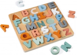 V pakiranju najdete 26 velikih tiskanih črk v čudovitih pastelnih barvah, obojestransko leseno tablo in kredo. Igrača je varna, trpežna in zasnovana za majhne otroške roke – brez ročajev, da otroci razvijajo občutek v prstih in koordinacijo oko–roka.