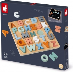 Ta kakovostna lesena vstavljanka JANOD združuje igro in učenje. Otroci vstavljajo barvite črke v izrezane obrise in si tako naravno osvajajo oblike abecede. Druga stran plošče služi kot tabla za pisanje s kredo, zato lahko vadijo poteze, prve besede in ustvarjalno risanje.
