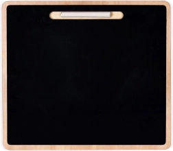 Na drugi strani vstavljanke je praktična tabla za pisanje in risanje s kredo – idealno za vajo potez in prvih besed.