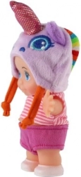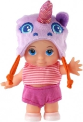 Ta majhna punčka z velikimi očmi in veselimi izrazi je odličen spremljevalec za vsakodnevno igro. Trdno plastično telesce dobro drži obliko, gibljive roke v ramenih omogočajo enostavno postavljanje in preoblačenje. Barvita živalska kapica punčki doda edinstven slog in spodbuja pripovedovanje zgodb.