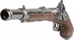 Oživite piratske pustolovščine z avtentično izdelano pištolo iz kovine in plastike. Dekorativne gravure in lesen videz ročaja spominjajo na zgodovinsko kremenjačo, ki se odlično poda h kostumom in tematskim praznovanjem.
