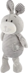 Ta siv črtasti zajček z ljubkimi detajli in srčkom na trebuščku otrokom prinaša občutek varnosti in udobja. Izdelan je iz prijetnega, mehkega materiala, ki vabi k objemu in je nežen tudi do najmlajših dojenčkov.