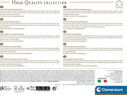 Sestavljanke znamke Clementoni so znane po visoki kakovosti in natančni izdelavi. Vsak kos se popolno prilega, kar zagotavlja prijetno izkušnjo sestavljanja. Te 1500-delne sestavljanke prikazujejo fantazijski vrt, ki očara s svojo lepoto in podrobno ilustracijo.