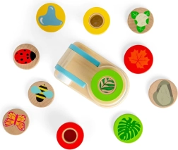 - 10 lesenih diskov s potiskom insektov in rastlin ponuja ure zabavnega učenja in otrokom predstavlja osnove mikroskopije.