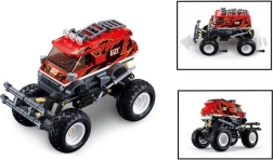 Zgradite si svoj rdeči off-road in se podajte na teren. Navijalni pogon brez baterij požene model naprej, medtem ko velika kolesa in robustni odbijači premagujejo neravnine. Deli se natančno prilegajo, končni model meri približno 18 cm, zato je odličen tako za polico kot za vrhunske dirke v otroški sobi.