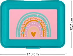 Ta škatla za prigrizek se ponaša z barvnim mavričnim dizajnom, ki dodaja veselo in igrivo noto vsakemu kosilu.