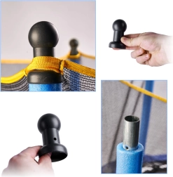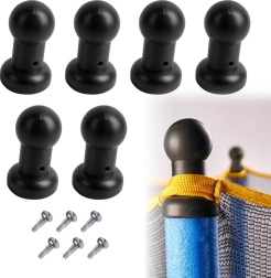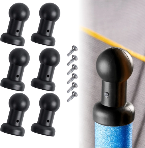 Plastične kape za pritrditev varnostne mreže trampolina. Ta set vsebuje 6 kosov črnih kap, ki so združljive z večino trampolinov na trgu. So primerne tako za trampoline z notranjo kot z zunanjo mrežo.< /p>