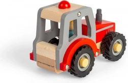 Ta traktor je kot ustvarjen za razvoj motoričnih sposobnosti otrok. Njegova zasnova združuje naravni les z rdečim in sivim lakom, kar mu daje privlačen videz.