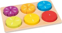 Lesena izobraževalna sestavljanka Ulomki je idealen pripomoček za malčke, ki želijo spoznavati osnove matematike skozi zabavno igro. Zahvaljujoč barvnim segmentom in preprostemu dizajnu si otroci zlahka osvojijo koncepte, kot so polovice, četrtine in drugi ulomki. Lesena podlaga olajša sestavljanje in zagotavlja daljšo življenjsko dobo izdelka.