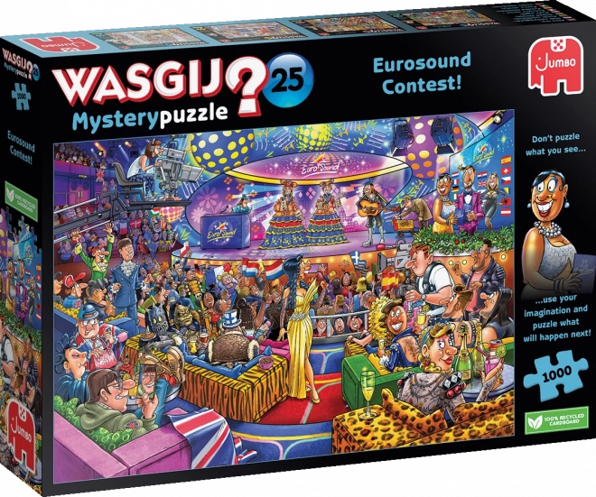 Sestavljanka WASGIJ je uganka in izziv hkrati. Z WASGIJ je sestavljanje sestavljank še bolj zabavno! WASGIJ je pravi izziv in izvrstna zabava celo za izkušene sestavljavce sestavljank. Vsako leto evropski umetniki tekmujejo za naslov najboljše pesmi leta. Razpoloženje v dvorani se bliža vrhuncu. Nihče ni mogel slutiti, kaj bo sledilo! Kaj točno se je zgodilo? To je skrivnost! Sestavljanka WASGIJ? ne sledi tradicionalnim principom in načinu sestavljanja po predlogi. S sestavljanko WASGIJ? Mystery namreč sestavljate prizor, ki je v neposredni povezavi s sliko in se odvija nekaj trenutkov kasneje. Uporabite svojo domišljijo in z radovednostjo raziskujte, kaj se dogaja z akterji sestavljanke WASGIJ Mystery v bližnji prihodnosti. Le sestavljanka ve, kako bo videti naslednji prizor. Prvo WASGIJ sestavljanko je leta 1997 narisal umetnik Graham Thompson. Ilustrativni video o sestavljanki Wasgij. Velikost sestavljene sestavljanke približno 68 x 49 cm